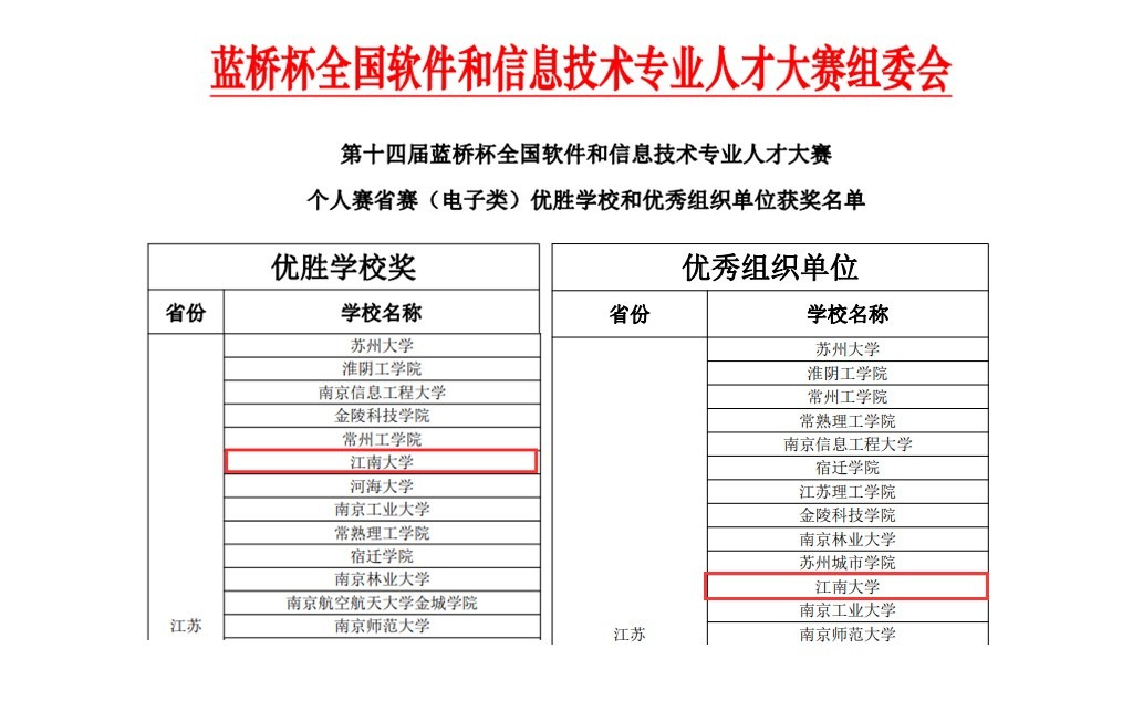 近日,第十四届“蓝桥杯”全国软件和信息技术专业人才大赛江苏省赛电子类赛道落下帷幕。江南学子共获电子类奖项69项,其中一等奖16项、二等奖27项、三等奖26项,16人取得国赛参赛资格,百合漫画