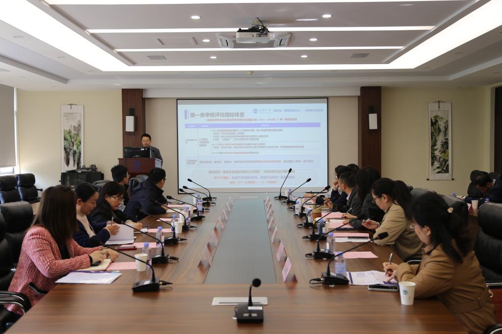 陶洪峰副院长汇报了学院审核评估工作方案及工作进展,分别就学院本科教育教学审核评估的实施时间及类型、学院评估工作机构及其主要职责、学院的主要工作任务、各专业的教育质量国家标准、核心指标梳理情况、下一步工作重点和难点等方面进行了介绍。根据学校本科教育教学评估工作的统一部署,学院成立了以书记、院长为组长的工作领导小组,并组建了审核评估工作办公室、报告组、材料组、学风建设组、环境建设组、督导组等专项工作小组,细化了学院审核评估工作中各小组的职能及实施方案,明确了各项任务节点安排和各阶段工作重点。