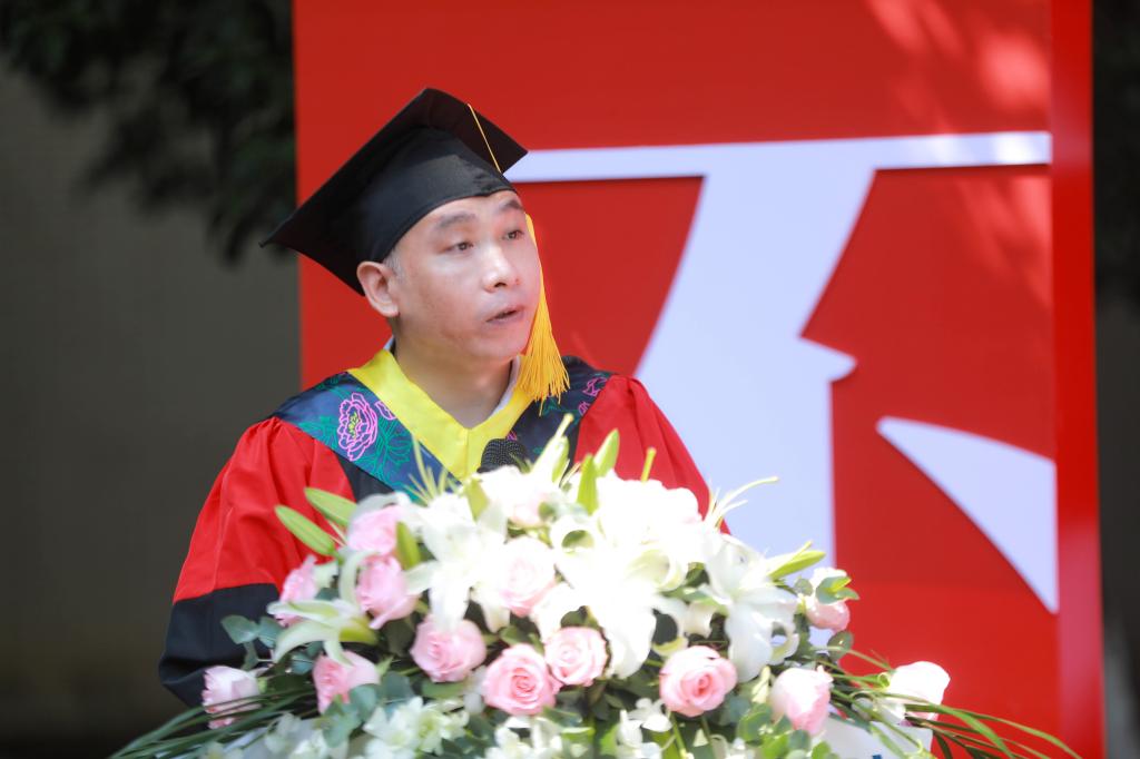 回首来路,师生情深意长。辅导员、班主任代表侯玉莹深情寄语毕业生。她结合工作经历,回顾和物联学子的相处时刻,悉数四年来的成长与收获。她以三句话寄语同学们,希望大家坚守奋进之志,保持内心的充实和热爱;永持乐观之态,笑对未来的挫折和磨难;常怀感恩之心,用善良和可爱去致敬人生。