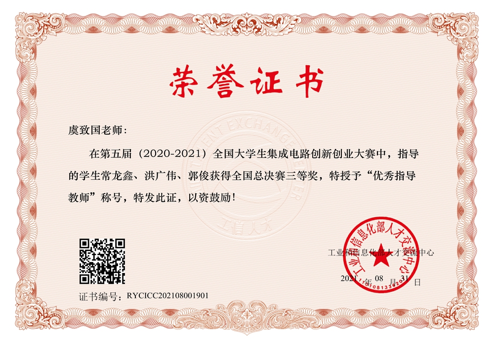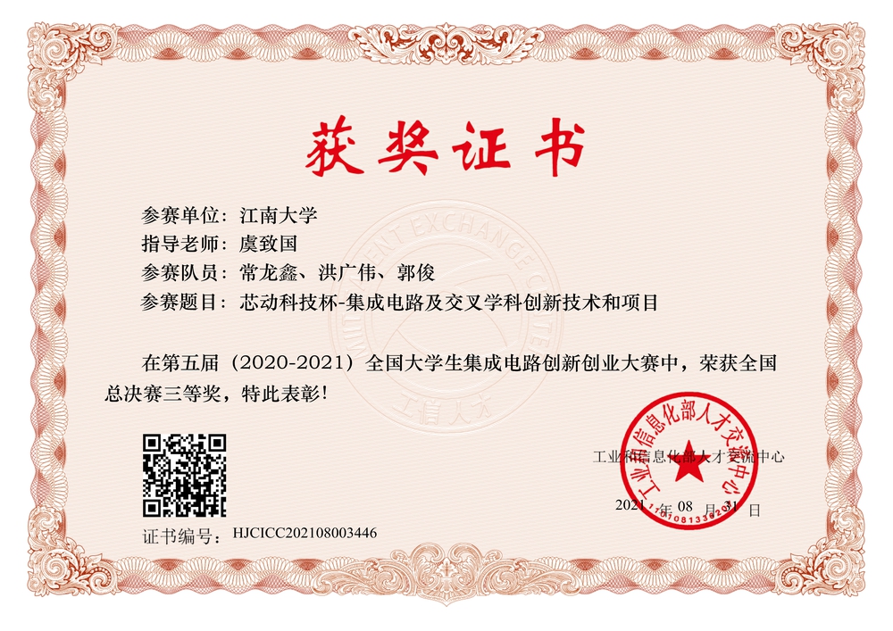 第五届全国大学生集成电路创新创业大赛获奖证书