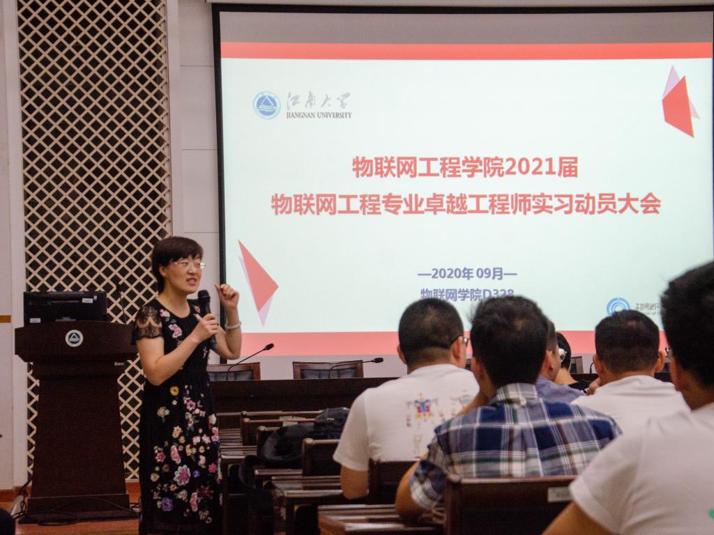 朱启兵结合自身求学、执教经历,回顾了物联网工程专业的创立、发展历程,从为什么要实习、如何实习、实习效果三个维度全面地介绍了实习工作。他指出,学院的物联网工程专业是国家特色专业、教育部首批“卓工计划”、首批“专业综合改革试点”专业,他希望同学们统一思想,始终以爱校荣校、爱院荣院的深厚感情,饱满的工作热情、高度的责任感和使命感投身到工程实践中,在校内导师和企业导师的指导下,顺利的完成实习工作。