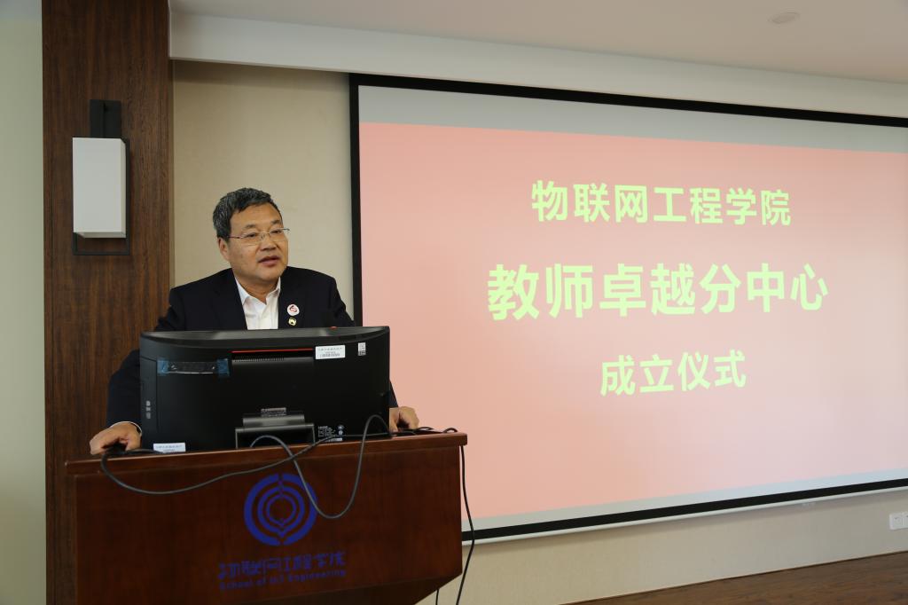 谢林柏作为学院教师卓越分中心主任发言,他指出学院教师卓越分中心的成立将进一步促进教师队伍建设、师资水平提升和业务能力提高,成为教师的“工作加油站”,同时将在促进学院6个本科专业的转变融合,开展新工科专业建设等教育教学改革过程中发挥关键作用。