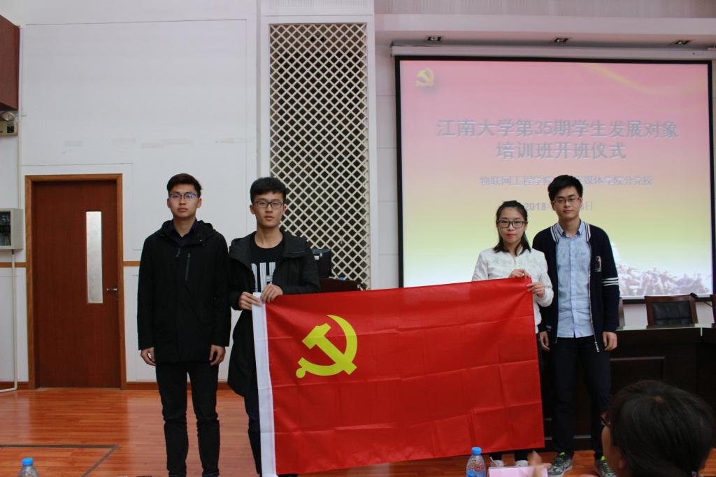 仪式开始,全体学员起立奏唱国歌。第34期分党校优秀学员代表郝泽亮同学发言,他向大家分享了党课学习心得,并表达了对本期学员的鼓励和祝愿。紧接着,上届培训班优秀学员代表高钰强等向本期学员代表姜浩、邓晓琳授予党旗。随后,全体学员在辅导员赵丽敏老师带领下进行了宣誓。