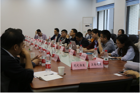 采访会上,学院领导介绍了作为国内第一家成立的物联网工程专业的实体学院,自成立以来在人才培养、专业队伍建设,科研项目、科研经费方面的成绩,以及在围绕物联网相关基础理论和应用技术,在促进科研成果转化,开拓科研成果的示范应用及服务地方企业方面取得的诸多成果。孙俊教授作为无锡市申报“IEEE智慧城市项目”团队的主要成员,介绍了无锡市成功入选IEEE智慧城市的唯一亚洲城市过程中所作的工作及目前的项目建设情况。随后的采访环节,与会记者就智慧城市建设、物联网在医疗领域的应用及物联网技术目前发展的瓶颈等问题进行提问,刘飞院长等作了精彩回答。会后媒体成员还参观了学院的教育部轻工过程控制重点实验室。