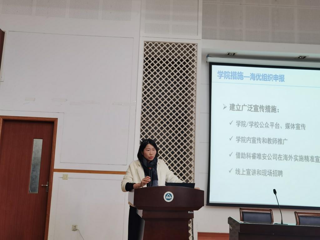 随后院长栾小丽就指标内常规人才招聘、指标外海外优秀青年人才申报、“唯实”人才培育计划三个方面对近期学院人才引培工作举措进行了详细的讲解;副院长陶洪峰就本科教学审核评估工作进展等进行了通报;副院长郭亚就近期开展国家自然科学基金申报系列辅导培训进行了回顾和工作布置;党委书记耿向阳就学院实验室招聘工作进行了通报。