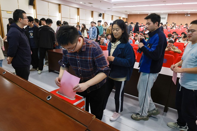 在图书馆305报告厅召开全院党员大会,选举出席学校第五次党代会代表。学院273名正式党员和49名预备党员参加了会议,大会由学院党委书记张华主持。