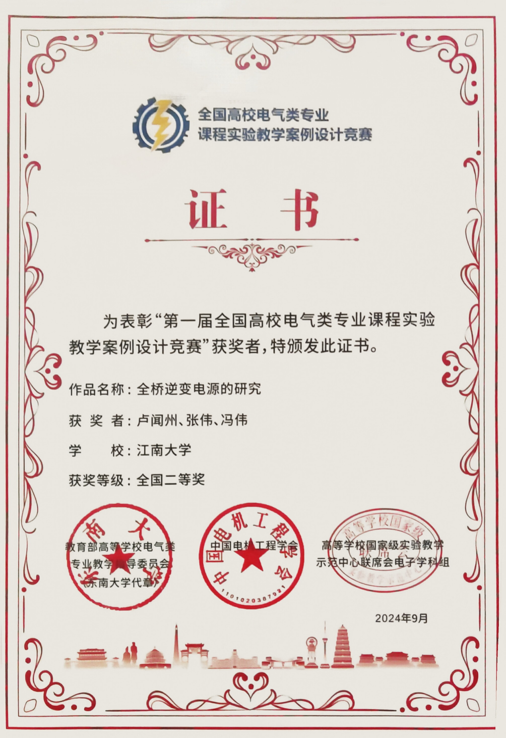 参赛,其案例“全桥逆变电源的研究”荣获全国二等奖。