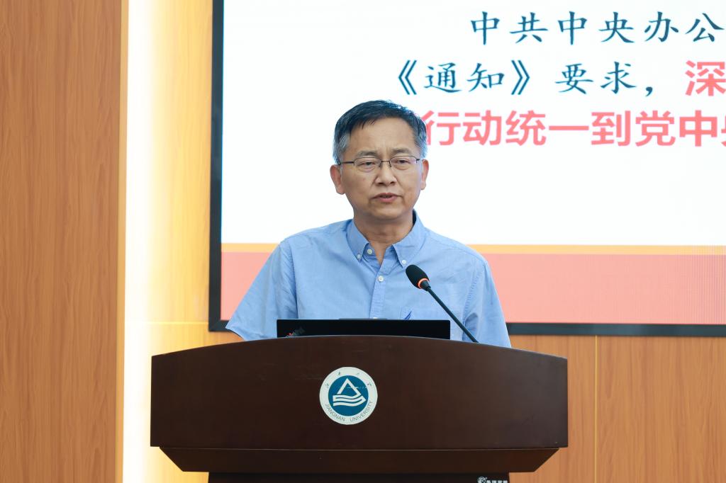深入贯彻中央八项规定精神学习教育专题辅导报告会在学院D328召开。我校马克思主义学院徐玉生教授受邀作专题辅导报告。学院所有教师党员、学生党员代表参加本次报告会。学院党委书记张华主持并讲话。