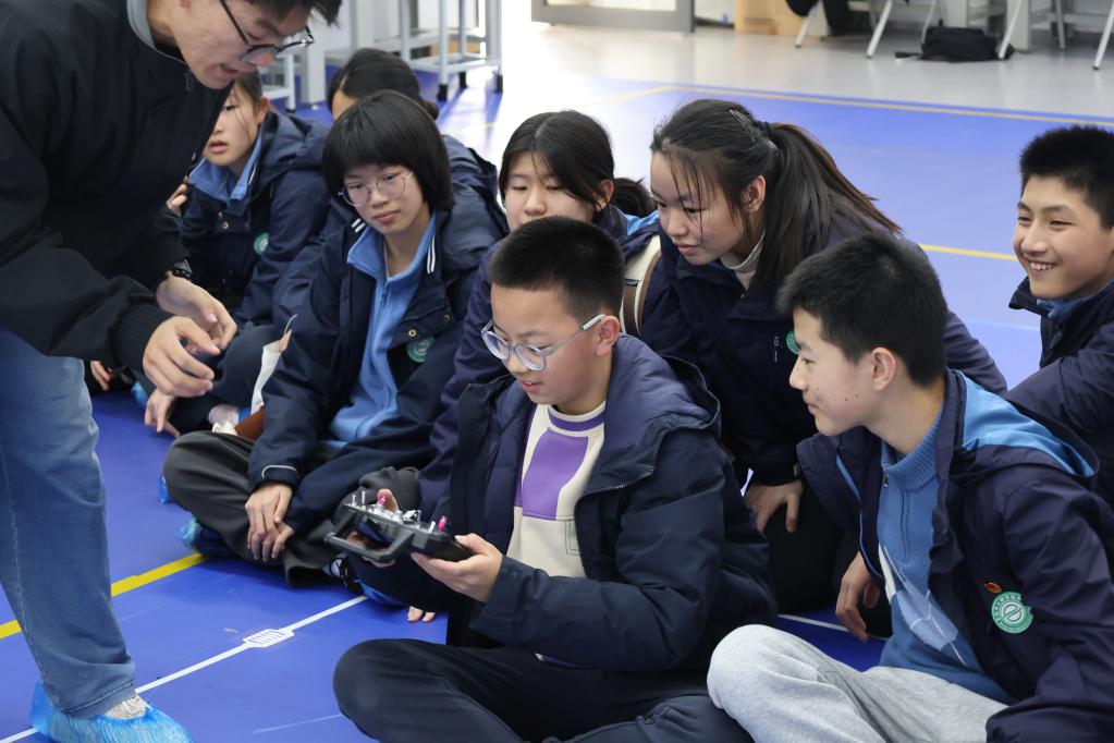 同学们纷纷驻足观察,认真聆听志愿者讲解,不时围绕研发原理、应用场景等问题积极提问,部分同学还亲手参与了互动体验。在看、听、问、做的沉浸式体验中,大家真切感受着智能科技的神奇与力量。