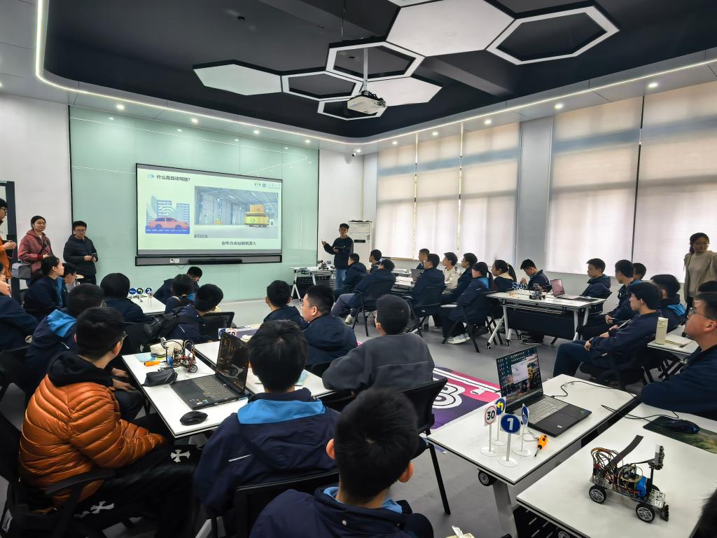 实践过程中,同学们六人一组、相互协作,在助教老师的指导下亲手组装、调试智能小车,反复尝试巡线、识别目标等操作。当亲手搭建的智能小车成功实现自主循线、精准识别时,科创空间里满是同学们的欢呼与喜悦,大家切实体会到了从理论到实践的科创成就感。