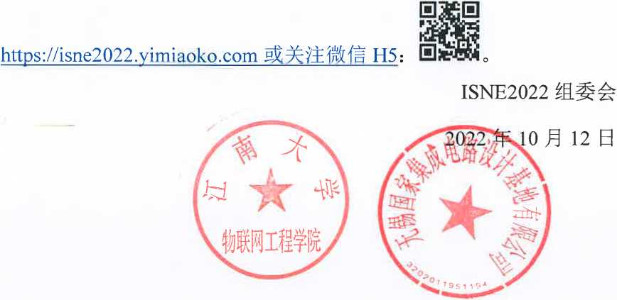 为配合举办地疫情防控需要,最大限度确保广大展商、参会人员的健康安全,保证学术会议与产业论坛的规模和质量,组委会慎重考虑决定:将原定于2022年10月21日-23日在新湖铂尔曼酒店举办的第十届下一代电子国际学术会议(ISNE2022)暨第一届无锡集成电路产研融合发展论坛延期至2022年12月9日-11日举办,地点不变。