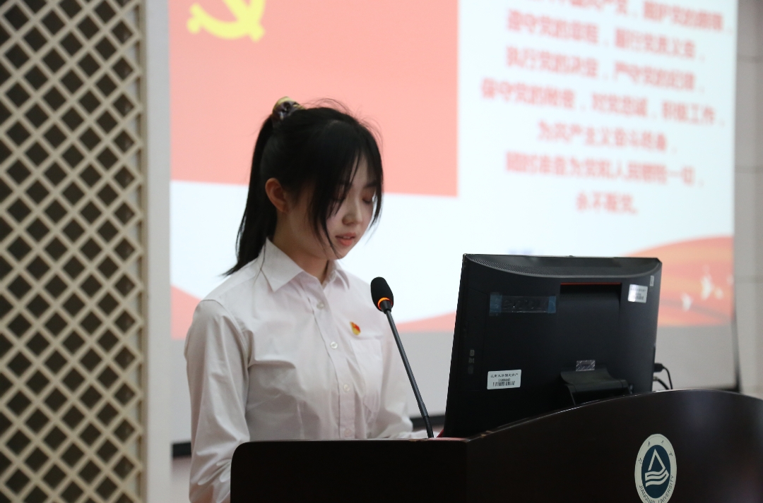 在D328会议室举行“七一”新党员宣誓仪式暨专题党课学习。学院党委书记程捷音、副书记兼副院长孔丽丹、分团委书记洪筱、辅导员代表李灿以及44名新发展学生党员参加活动。大会由学院专职组织员孙小芳主持。