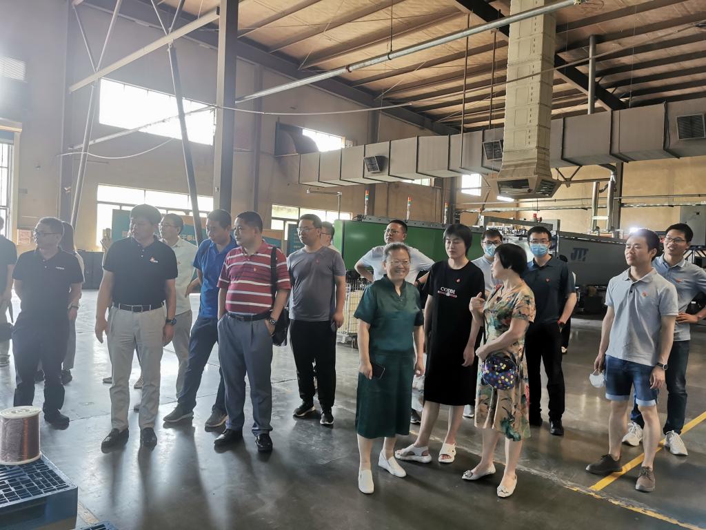 首先,党员们来到无锡巨丰复合线有限公司的研发部和生产车间,进行参观学习和交流。公司党支部书记蔡麟陪同参观,并为大家介绍了产品自动化生产投入运行情况、产品生产关键技术攻关以及产品市场销售情况等。
