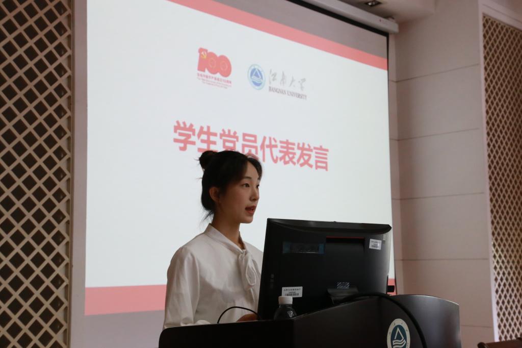 程捷音代表学院党委向新入党同志表示祝贺,向全院各岗位上创先争优、奋斗奉献的400余名师生党员致以节日的问候。她说,庆祝中国共产党成立100周年,是党和国家政治生活中的大事,新党员入党宣誓活动既是对建党100周年的隆重纪念,也是对新老党员一次深刻的党性教育,广大党员干部要坚定理想信念,把学习贯彻习近平新时代中国特色社会主义思想放在首位;要永葆初心使命,用一生来践行跟党走的理想追求;要坚持发挥先锋模范作用,在实干中与祖国共进、与时代同行,以高质量发展庆祝建党100周年。