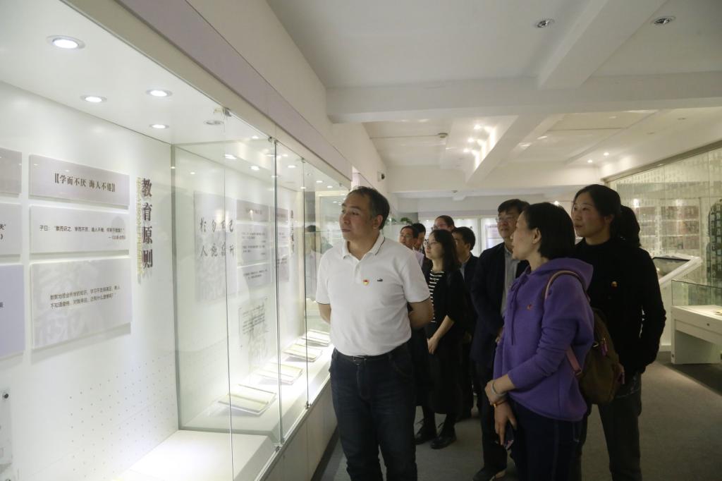 10日,中心组成员首先参观了位于山东济宁市曲阜师范大学的中国教师博物馆。该馆是全国首座也是唯一教师文化主题的综合性博物馆,入选教育部师德师风建设基地。中心组一行参观了“先师孔子”“教育文物”“教师典范”等为主题的陈列,从明代至今不同时期教材课本到功能各异的教具仪器,从人民教育家陶行知先生的信札到“时代楷模”黄大年教授的手稿,让人驻足流连。党委委员们在观物、知史、见贤、明道的过程中,滋养了立德树人初心、坚定了弘文励教使命。