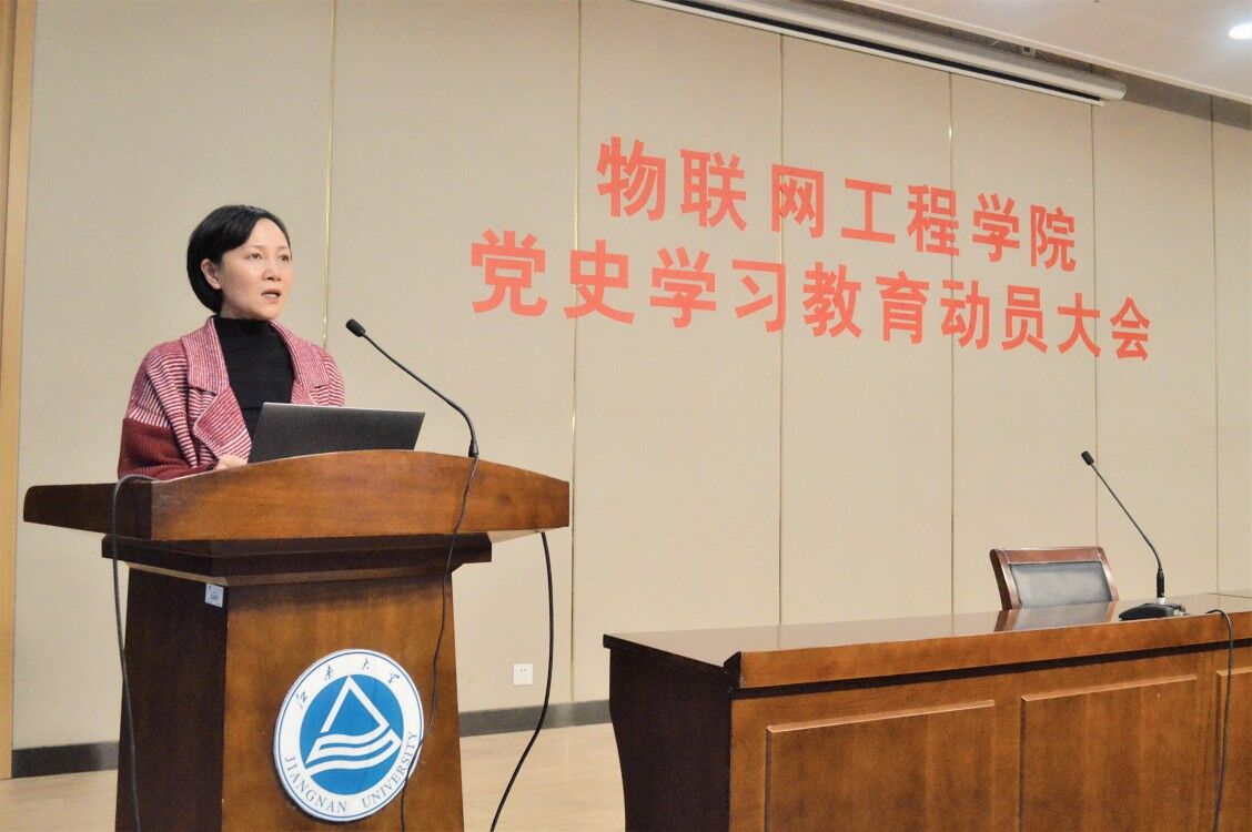 首先,程捷音作动员讲话。她指出,召开本次党史学习教育动员大会,旨在认真学习贯彻习近平总书记在党史学习教育动员大会上的重要讲话精神,动员全院上下迅速兴起党史学习教育热潮,奋力开创学院高质量发展新局面。她要求,一是要深刻认识开展党史学习教育的重大意义,明确“为什么学”;二是要牢牢把握党史学习教育的目标要求和重点内容,明确“学什么”;三是要抓好统筹兼顾,把党史学习教育与庆祝建党100周年系列活动紧密结合,明确“怎么学”;要将党史学习教育贯穿2021年全年,并紧扣学院“十四五”规划,抓实“五个专题”,力求规定动作不缺位不走样、自选动作创特色出成效,扎实推进党史学习教育高质量开展。