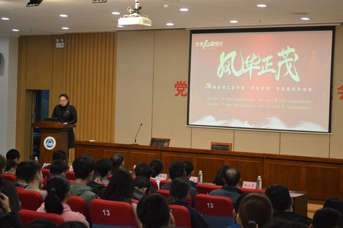 最后,唐忠宝教授以“学习党史 增强‘四个意识’”为题开启“风雨兼程”党史大讲坛第一讲。他从“反对历史虚无主义”“坚定共产主义信仰”“坚持全面深化改革”“牢固树立‘四个意识’”四个方面剖析了中国共产党为什么“能”,带领师生党员追忆百年征程波澜壮阔,体悟百年初心历久弥坚,号召物联师生学党史、强信念、跟党走,进一步增强“四个意识”、坚定“四个自信”、做到“两个维护”,坚定不移跟党走中国特色社会主义道路,为实现中华民族伟大复兴的中国梦贡献青春力量!