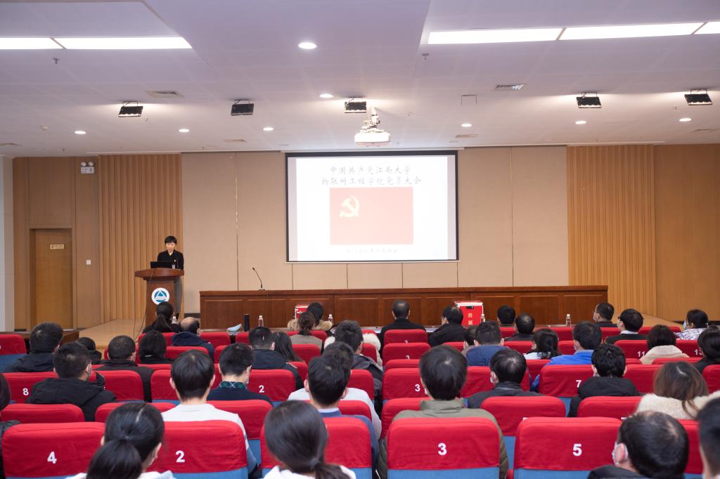 D328分会场。会议由院党委副书记孔丽丹主持,全体师生党员参加了会议。