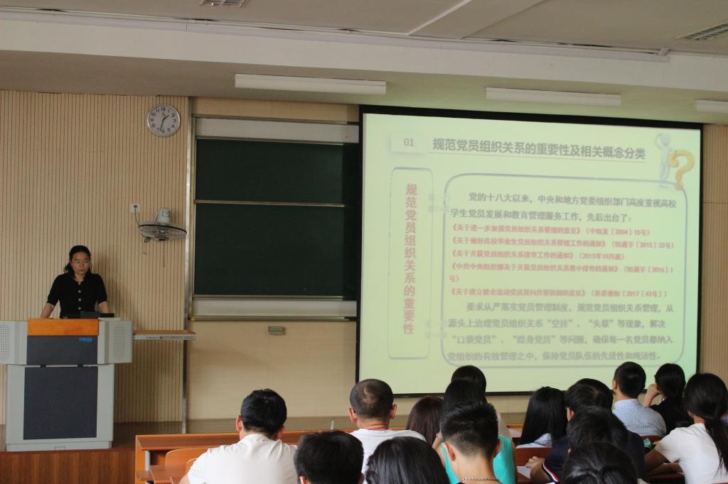 大会伊始,孙颖老师为大家讲解了党员党组织关系转移的具体事项。孙颖老师从“什么是党员组织关系转移”概念入手,首先强调了这项工作的重要性,紧接着就如何咨询转接地的党组织关系,如何准确地转接党组织关系等细节做了详细的解释和说明。随后,在赵丽敏老师的领学下,全体毕业生党员认真学习并签署了《毕业生党员须知》。