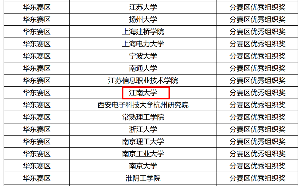 分赛区“优秀组织奖”