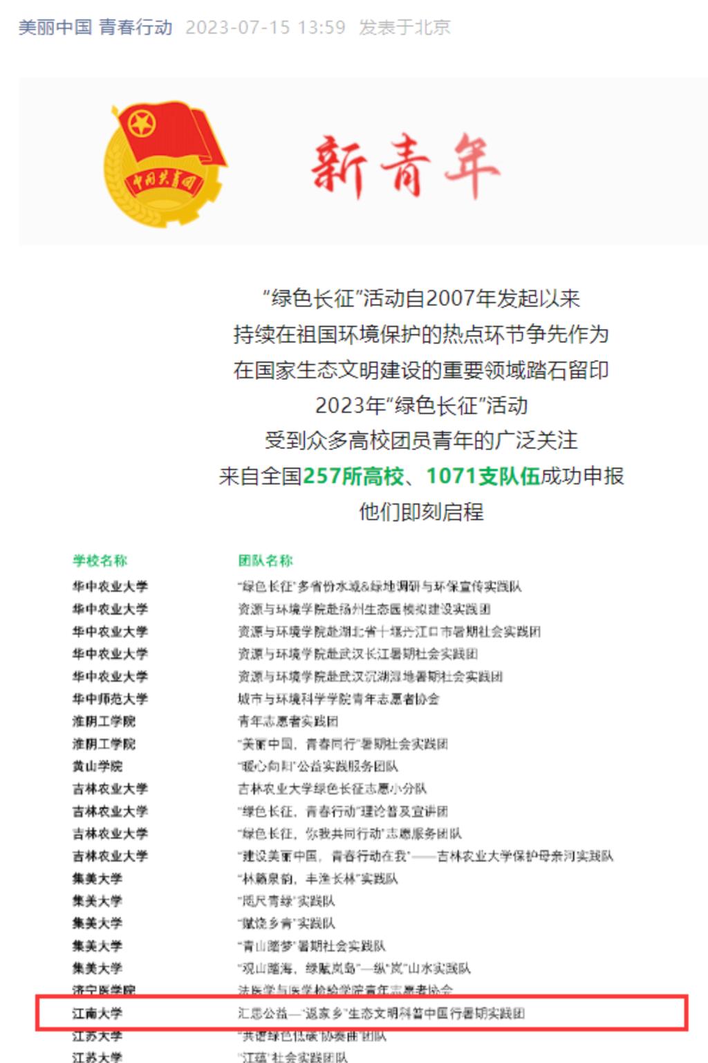 汇思公益团组建的“汇思公益——返家乡生态文明科普中国行暑期实践团”成功入选2023年乡村振兴“笃行计划”专项行动全国示范性团队和“美丽中国·青春行动”2023年青少年绿色长征科考实践活动,两个专项活动均为百合漫画