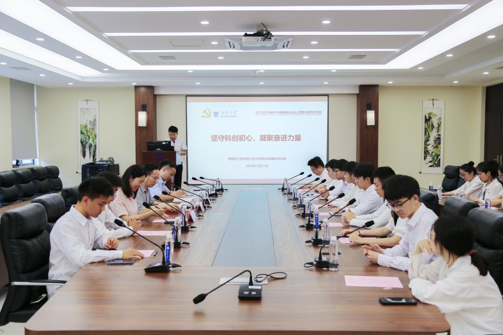 交流发言环节,博士生党员吴佳糠讲述了“半导体传感器件与集成电路研究团队”的青春奋斗故事,团队十年来连续攻克多款国产高端运存芯片和传感器关键技术,他们身上所形成的“芯火”精神让在场师生党员真切感受到新时代青年的责任与担当。硕士生党员段勤硕和本科生党员李世骏分别从个人和科创俱乐部角度出发,分享了在物联网大学生创新实践基地成长的心路历程,展现了广大物联学子“唯实”的精神气质。