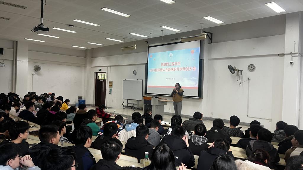 活动伊始,孔丽丹以《青春正当时 奋斗铸辉煌》为题讲授开学第一课。她指出,大学生正处于人生最美好的时期,惟有奋斗才能不负时代,惟有奋斗方能成就辉煌。在大三下学期的关键节点上,要做好职业生涯规划,找准定位和目标,积极追求人生理想,把学习奋斗的具体目标同民族复兴的伟大目标结合起来,把人生抱负落实到脚踏实地的行动中,走好、走稳新时代“赶考之路”。她从当下就业升学面临的新形势、新机遇、新挑战入手,通过大数据对比,对当前就业升学环境作客观分析与解读,重点介绍学校保研政策,并对意向升学的同学提出中肯建议:一是呼吁学生树立“双保险”意识,认清考研形势,切勿盲目跟风;二是理性科学择校,要充分了解院校招生信息,合理确定考研目标;三是坚定考研信念,要做好复习规划,注重学习方法,绝不半途而废。