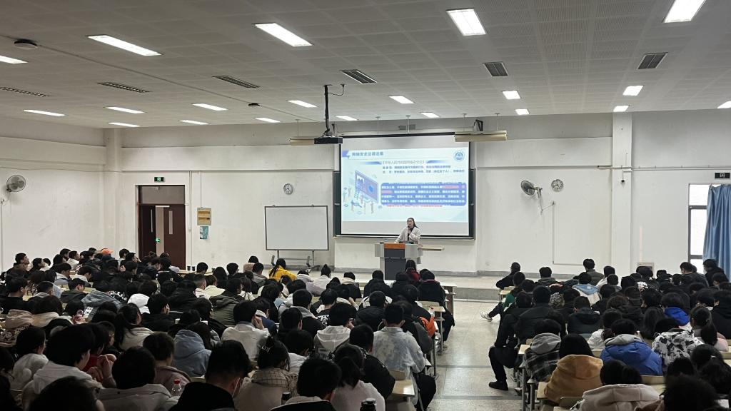 随后,李灿进行网络安全主题教育。她带领全体学生了解网络安全相关的法律法规及校纪校规,提醒同学们网络并非法外之地,要对自己的网络言行负责,提高网络道德素养。李灿也通过讲解网络安全诈骗的具体实例,为同学们介绍了常见的网络安全风险和预防措施,引导学生树立网络安全观,提升网络安全意识。