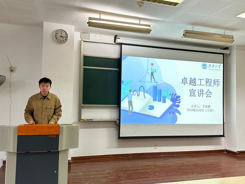 曾参与“卓工计划”的2019级自动化专业茅建鹏同学在会上与学弟学妹进行了分享。他讲述了卓工实习的成长历程,总结个人的经验与收获,分析了“卓工计划”的适合群体、有利条件,为同学们提供了一些具体建议。最后,在场老师就同学们关心的双导师制、考研升学、就业等问题进行答疑交流。