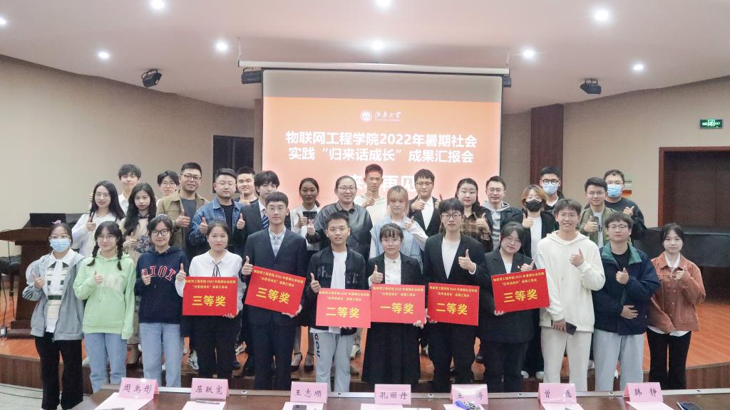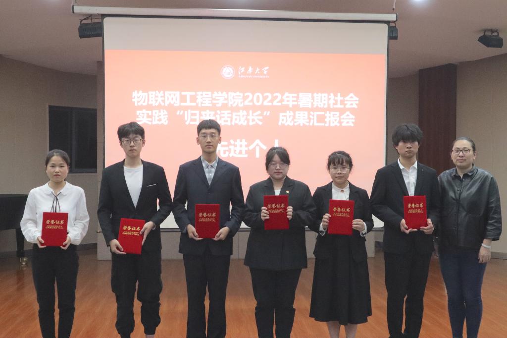 “农情蜜意”乡村振兴实践团、“行走的环保小课堂”垃圾分类科普公益团荣获团队二等奖,“青春百年,‘常’学常新”常州三杰薪火实践团、“寻访红色印记 传承红色基因”党史学习教育实践团、“‘微’探索,寻‘芯’路”——走进无锡芯片企业暑期社会实践团荣获团队三等奖。潘瑶瑶等6位同学获得学院2022年暑期社会实践先进个人荣誉称号。现场嘉宾为获奖集体和个人代表颁发了证书。