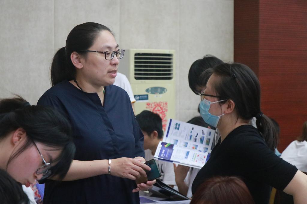 学院党委副书记、副院长孔丽丹同企业负责人交谈