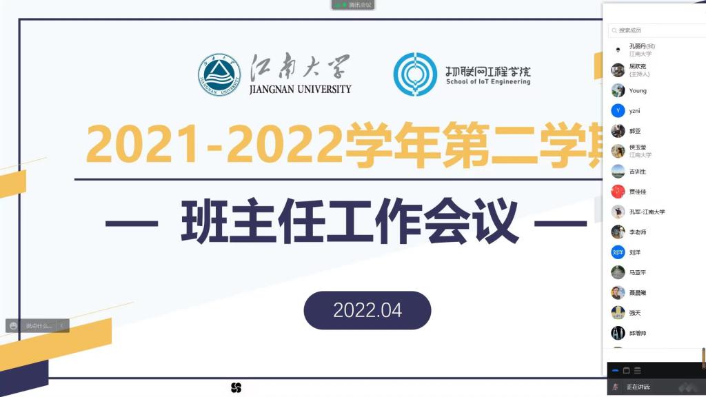 最后,程捷音在总结讲话中进一步明确了班主任工作要求。她向班主任强调,一是要提高政治站位,切实增强责任意识,在全面把握属地、学校的疫情防控政策的基础上,通过细致入微的思想政治工作引导学生理解现行管控管理办法的合理性、科学性,坚决守住来之不易的疫情防控成果;二是充分关心学生学习生活的困难,进行常态化排查,借助辅导员、班主任、班委等多方力量做好学生的情绪疏导、思想引导、心理辅导工作;三是做好学生与学校之间的桥梁纽带,引导学生树立大局意识,通过合理途径反映正常诉求,同时也积极帮助学生排忧解难。