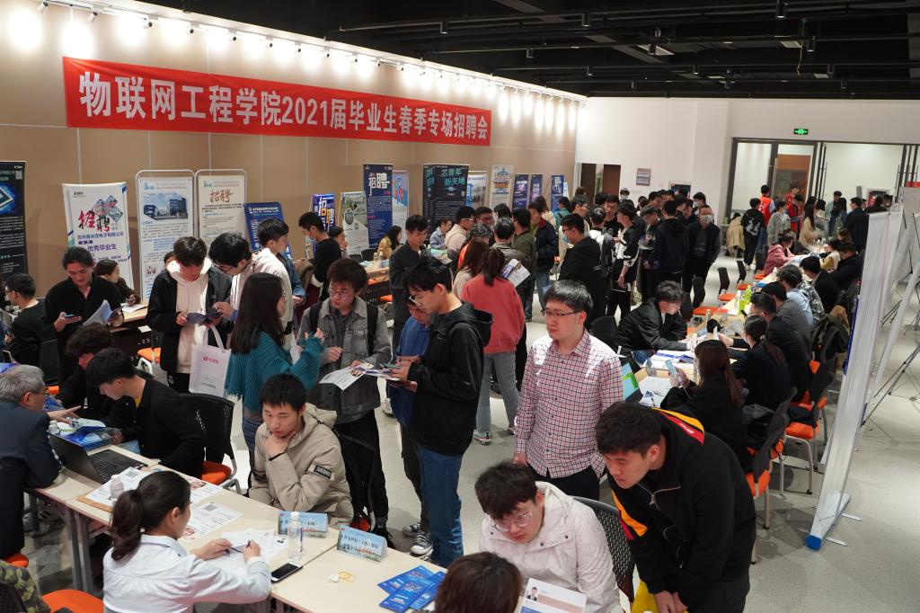 2021届毕业生春季招聘会在北区大学生活动中心成功举办。广州中和互联网技术有限公司、无锡贝斯特精机股份有限公司、无锡新捷电气股份有限公司等72家优质企业参会,提供了近350个专业对口岗位,吸引400余名物联学子前来应聘,共收到学生简历500多份。