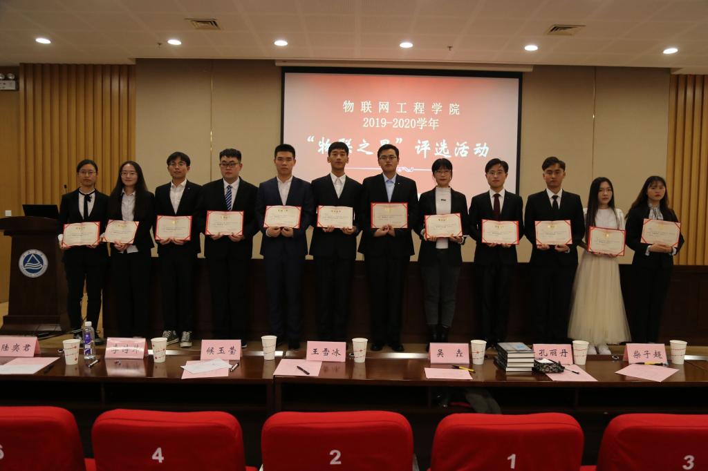 经过评委和大众评审的现场打分,最终,王志强、袁静怡、纪成业、孟令钦、林欣宇5位候选人荣获2019-2020学年“物联之星”荣誉称号。吴忌、徐欢、沈雨阳、李可、宋鹏、王鲲鹏、钮丹丹7位候选人荣获2019-2020学年“物联之星”提名奖。