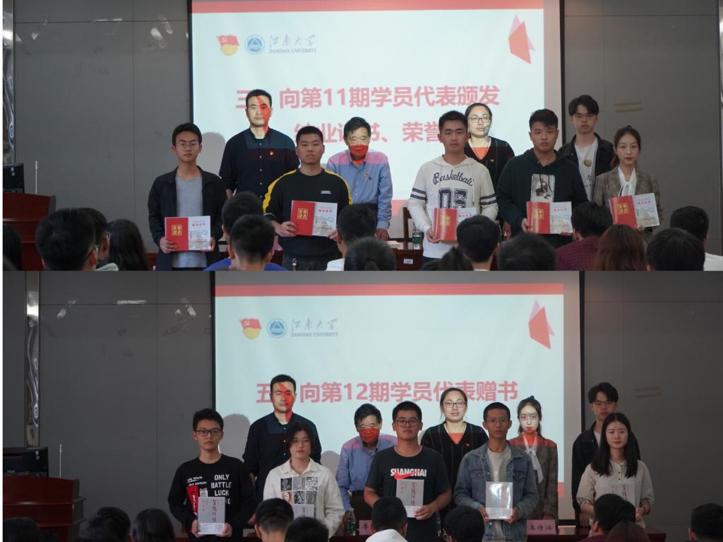 为11期优秀学员代表颁发荣誉证书并向12期学员代表赠书