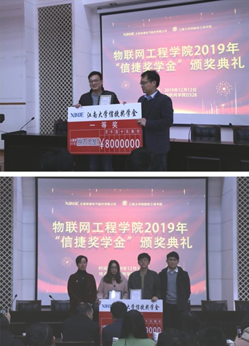 院长谢林柏、副书记副院长耿向阳、团委书记吴垚、团委副书记肖志勇,无锡信捷电气股份有限公司副总经理陈世恒、总经理助理冯予、校企经理王正堂、人力资源副经理张妍,获奖学生代表及学院2018、2019级130余名研究生参加。典礼由耿向阳主持。