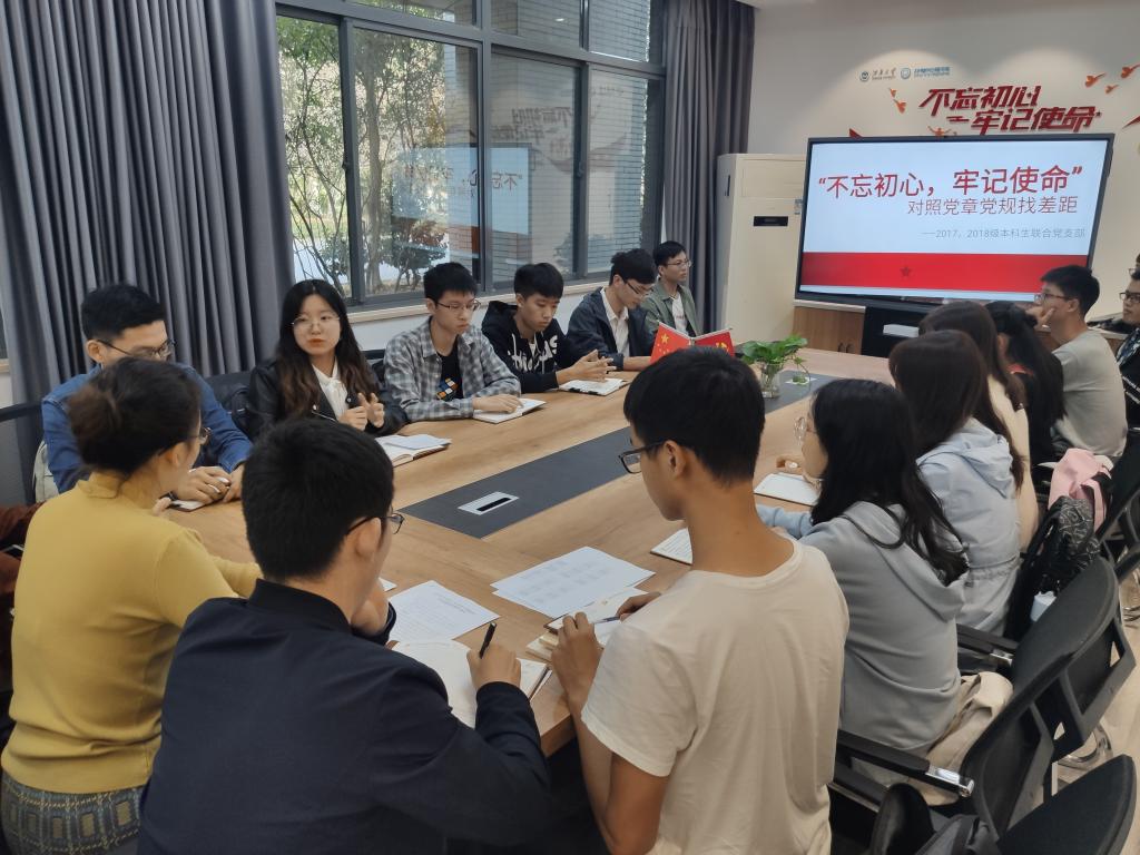 近日,2017、2018级本科生联合党支部开展了“‘不忘初心、牢记使命’对照党章党规找差距”主题活动。会议由支部书记洪筱同志主持,李灿、杜磊同志分别领学,党支部18名党员同志参会。