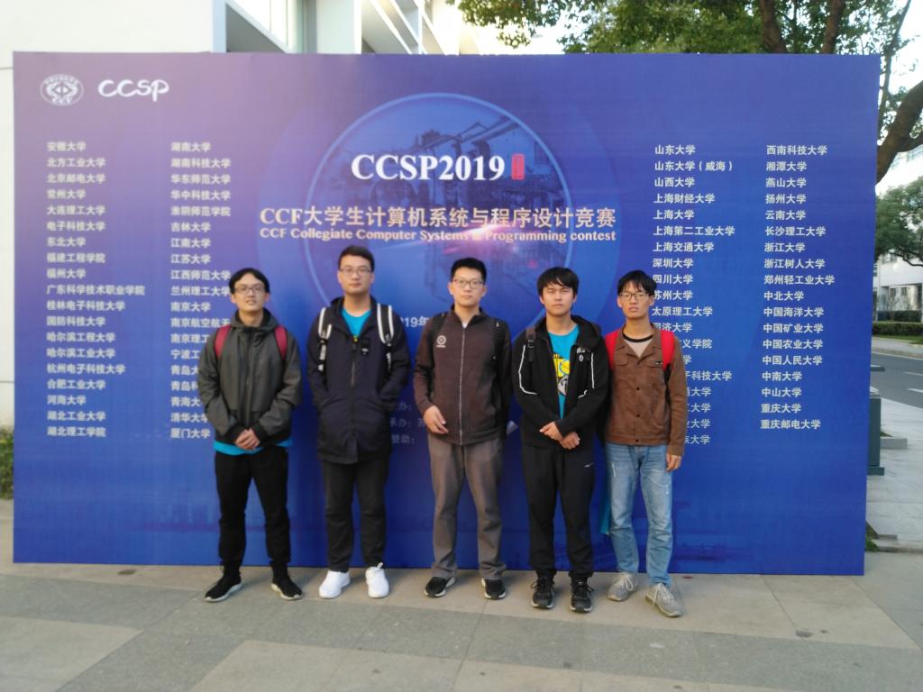 2019 CCF大学生计算机系统与程序设计竞赛(Collegiate Computer Systems& Programming Contest, CCF CCSP)总决赛于10月16日在苏州市职业大学正式拉开战幕,来自浙江大学、同济大学等全国75所高校的461位选手从9点开始,到21点进行了一场历时12个小时的鏖战,竞赛现场异常激烈,实时榜单名次更新不断,最终我校计算机专业三位选手在张桂珠老师的带队下获得1银2铜的好成绩:许轲获银奖,陈朝潮和方梦成分别获铜奖。