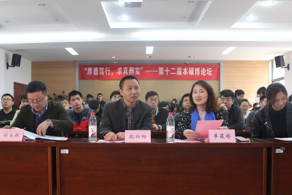 开幕式上,单筱婷肯定了院学生在历届本硕博论坛中取得的成绩,并指出新形势下,要努力培养能够承担时代责任,具有科学素养、创新精神、国际视野和人文情怀的高素质创新型人才。同时也希望同学们要学作一名知识渊博的人,养成终身学习的良好习惯。随后,栾小丽对本次论坛的主题做出了深刻的解释:厚德笃行,求真辨实——应当以德立人,做学问必须要笃行,勤于思考,求真辨实。同时对本届本硕博论坛的工作提出了期望——继承往届优良传统,形成本届特有风格。本届论坛举办期间安排了专业讲座与研讨,“学生权利与义务”主题沙龙,专业知识与技能竞赛,模拟招聘大赛等一系列精彩纷呈的活动。研究生李可作为学术代表宣读了学术道德倡议书,随后主持人介绍了本硕博论坛的LOGO,所有与会成员一起在LOGO前合影留念。