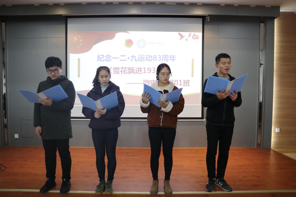 随后全体同学共同观看了一二·九运动纪录片《大抗战》,在全面系统、客观生动的历史回顾中,感受全民族团结一致的抗战精神、信仰与热血。紧接着,瞿秋白、雷锋、蛟龙号、王选、远望号特称团支部带来精心准备的诗朗诵,带领大家通过文学作品,感受那个年代的沧桑与激昂,同时以昂扬的气势表现出当代青年的朝气与锐气。
