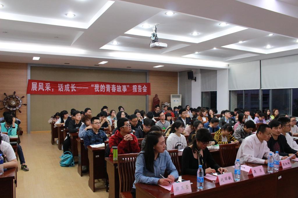 在院B310成功举行了以“展风采,话成长”为主题的“我的青春故事”报告会,院党委副书记、副院长耿向阳老师,分团委书记吴垚老师,14级辅导员金钰锁老师,16级辅导员赵丽敏老师,研究生辅导员侯玉莹老师,以及一二三年级部分同学出席了报告会。