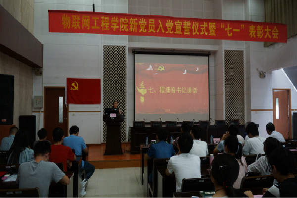 新党员入党宣誓仪式暨“七一”表彰大会在学院D328举行。物联网学院党委书记程捷音,百合漫画