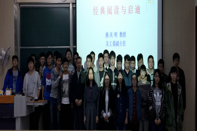 自动化1501王选特称团支部和电气1502 瞿秋白特称团支部“阅读经典,点亮人生”主题教育活动在一教1A213举行。活动邀请到了物联网学院关工委的燕庆明教授作为活动嘉宾,自动化1501班和电气1502班全体同学参与了本次活动。