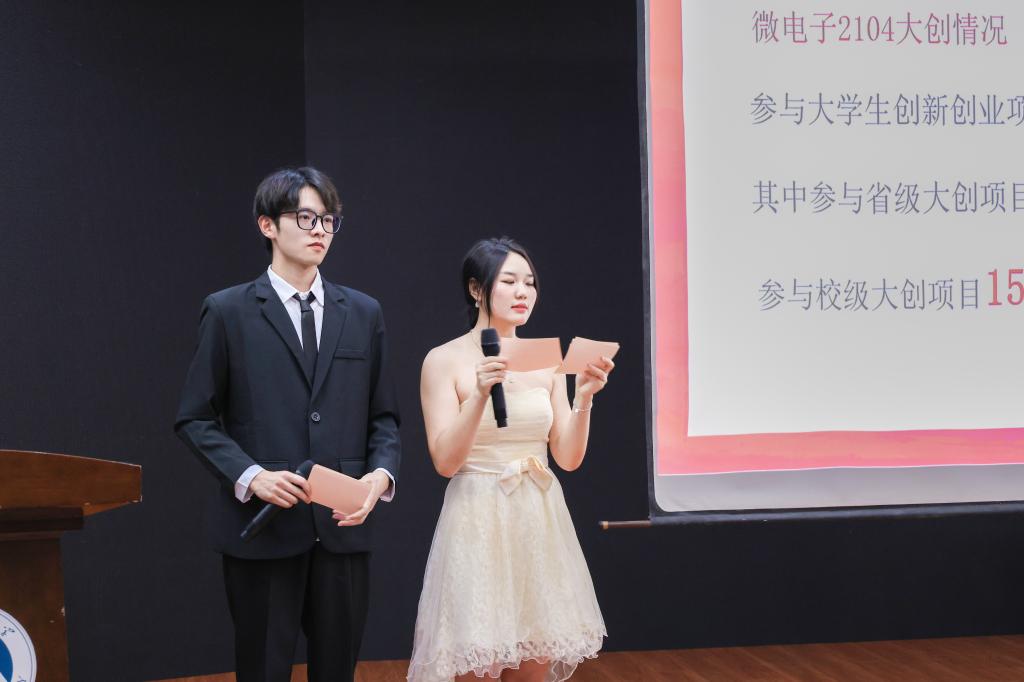 孔丽丹在致辞中指出,学院注重多元化活动平台的打造,在实现“个人-宿舍-集体”立体式榜样选树的同时,为大家提供了展示自我、学习优秀的宝贵契机。“先进班集体的评选不是终点,我们希望以此次活动为契机,指导同学们为自己打造一个大学里一同成长进步、相互扶持、终生受益的大家庭!”她着重强调了学风建设的必要性和榜样引领的重要性,借此表达对物联学子形成“积极向善,唯实为先”优良学风的期许。