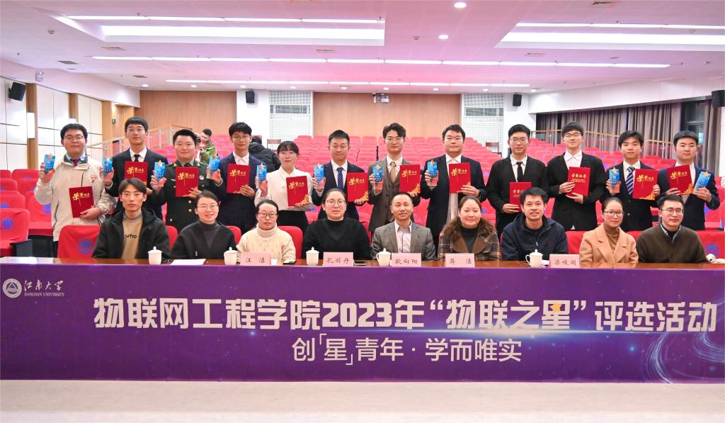 经评委打分、大众评审等环节,朱文青、齐子时、霍雷霆、丁瑞、童翊轩、侯梦涛、王鲲鹏、张陈大为、时世骏、曹喜悦等10位同学荣获2023年“物联之星”荣誉称号,沈熙、顾斌豪、李昊锦、陈彭浩、卡德尔党等5位同学荣获“物联之星”提名奖。