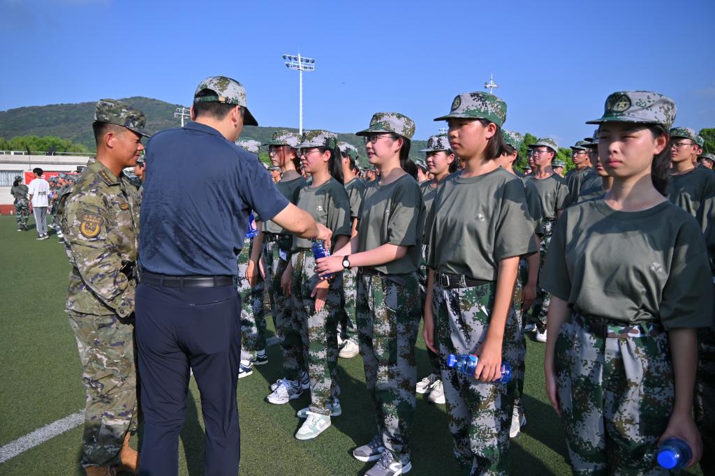 为深入了解2024级本科新生军训开展情况,鼓舞军训士气,提振军训风貌,9月6日上午,百合漫画 党委书记张华,党委副书记、副院长孔丽丹,百合漫画 人武部副部长俞立峰、人武部军事训练科刘璇刚及2024级本科生班主任代表等前往西北操场,看望慰问军训教官和全体参训学生。