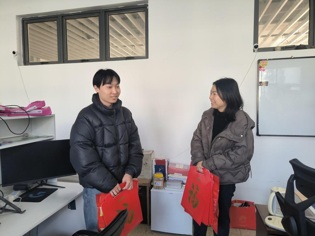 组织开展春节慰问留校学生活动。学院党委副书记兼副院长吴妍、学工办主任洪筱等一行走访了学生宿舍、实验室及大学生创新实践基地,为留校学生送去新年问候和美好祝福。