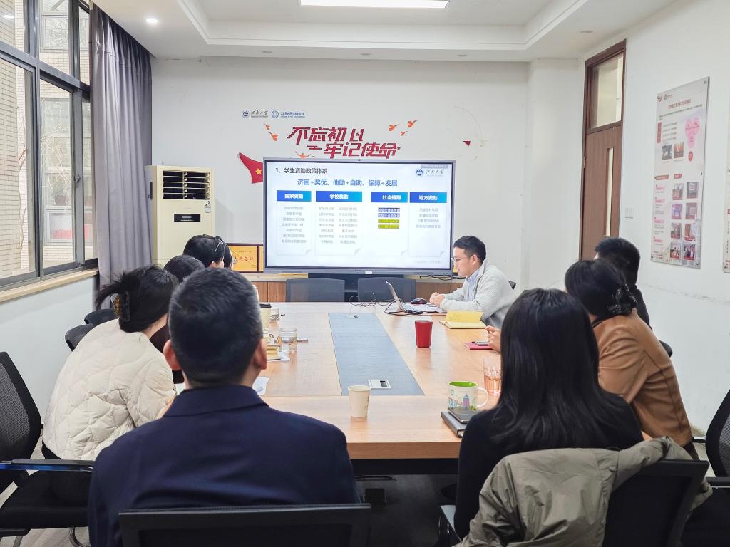 沈滔对标“三全育人”综合改革要求,以“四链融合”为主线,从资助赋能链、团结育人链、国防教育链、国际视野链四个维度展开,系统复盘工作现状并提出进阶思路。资助工作方面,他强调要严格执行“精准识别-动态管理-成长反哺”全链条式管理,做好困难生的认定与帮扶,构建学院“四精四+”资助育人模式,打造资助育人品牌活动,实现从“输血”到“造血”的育人新生态。民族生管理上,落实“入学—培养—活动—就业/升学”闭环式跟踪培养,精准对接学生成长需求,以铸牢中华民族共同体意识为主线,凝聚良好文化氛围。征兵和海外交流方面,推行“宣传动员、政策落实、服务保障、成长赋能”四维协同机制,创新工作形式,加大宣传力度,未来将实施“留学导航计划”和“退役士兵成长说”等,形成“国防教育+国际视野”双轮驱动的育人格局。