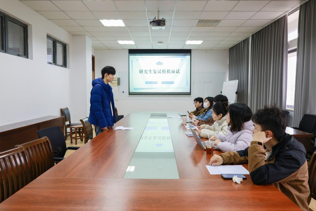 于D308会议室开展2025年考研复试模拟面试活动。学院学风工作扎口辅导员王雪冰、毕业班辅导员屈跃宽、张圆出席活动,20余名2021级考研生参与模拟面试。