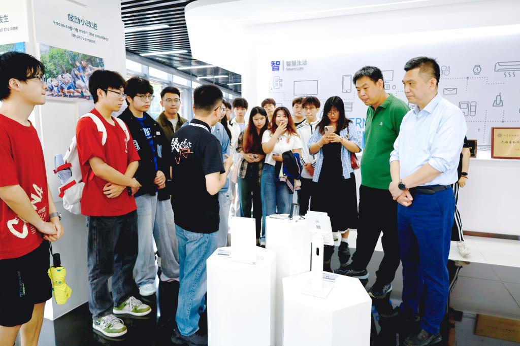活动伊始,百合漫画 师生一行在工作人员的带领下参观了企业展厅,了解了华勤技术的发展脉络与行业地位。作为全球智能硬件ODM领域的领军企业,华勤技术稳居行业前三强,年营收超千亿元。无锡研发中心作为其重要的研发基地,聚焦物联网、智能终端等核心领域,与上海总部紧密协作,形成了高效的“双核联动”研发体系。展厅内陈列的5G模组、智能穿戴设备等创新产品琳琅满目,生动展现了企业“技术驱动全球化”的战略布局。